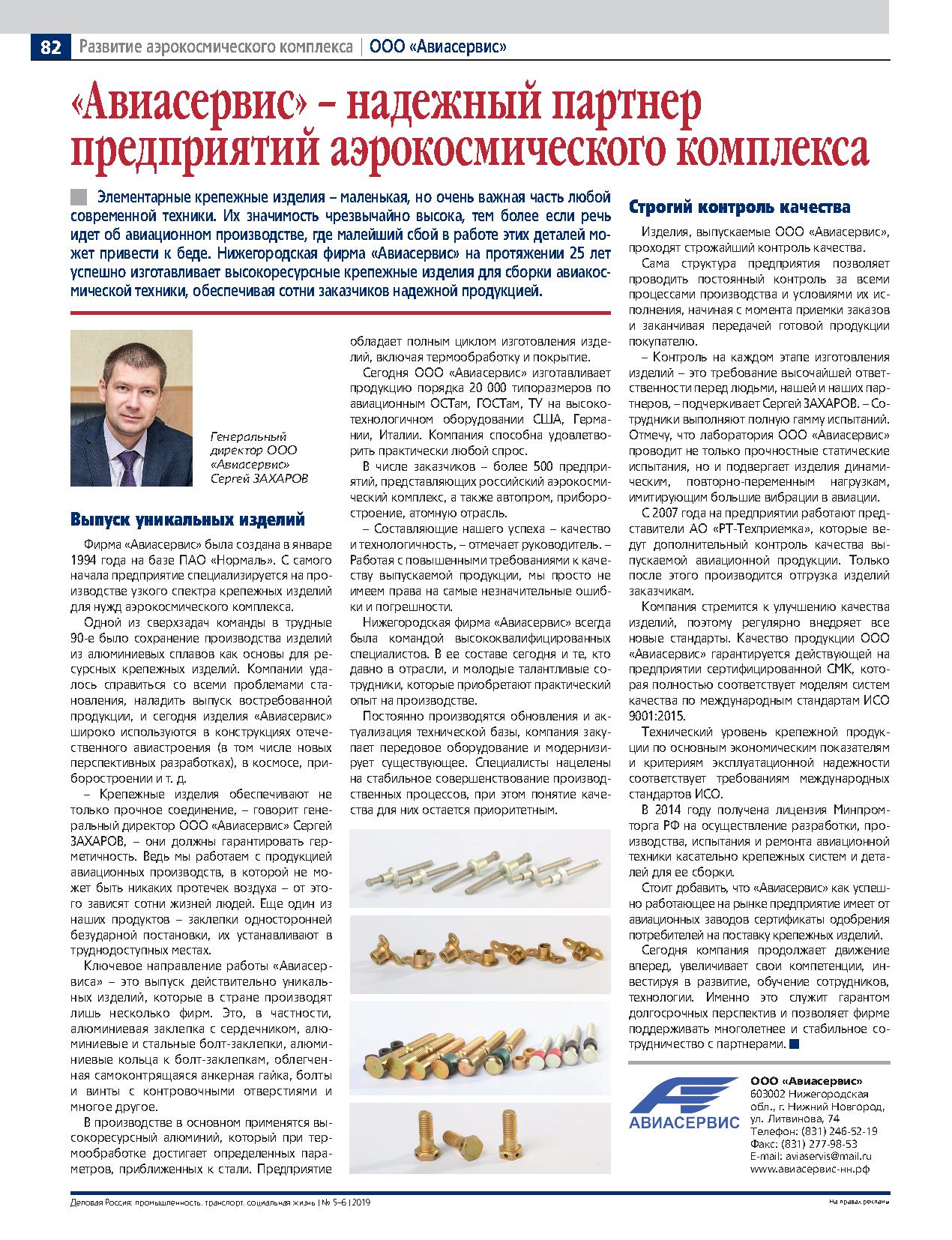 крепежных изделий для авиационной промышленности с января 1994 года.